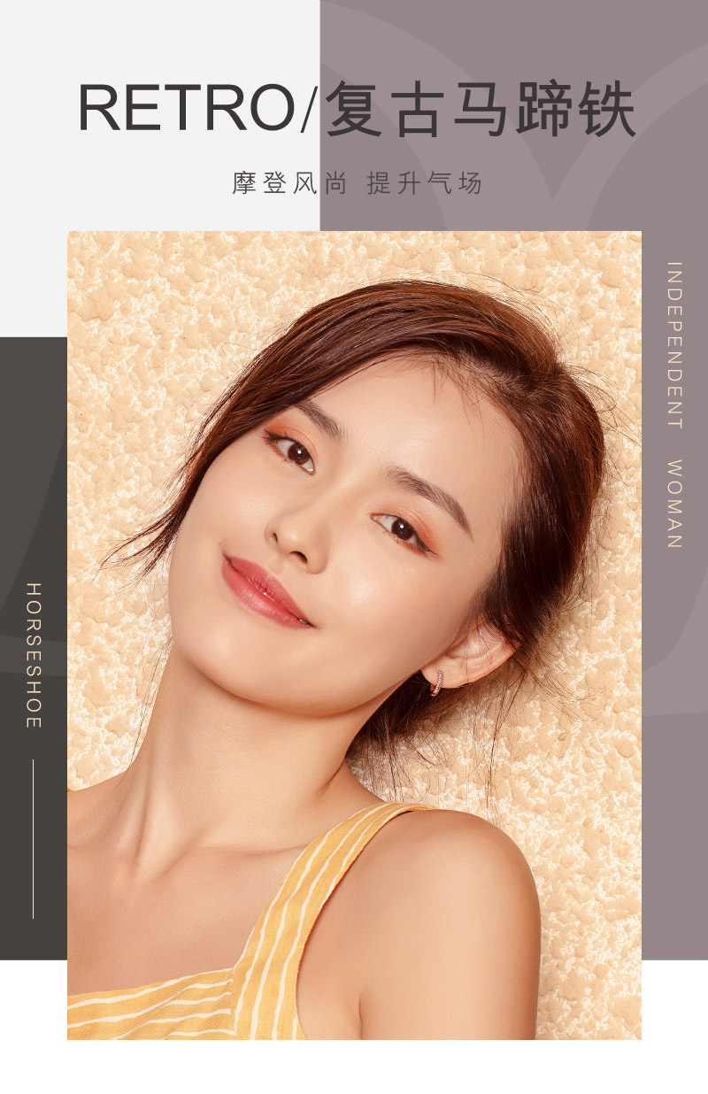 六福ジュリー18 K金精致马蹄形ダイヤモモンドイヤレング女性のバラゴルドピアプリケ号29514合计15分/赤18 K/2.11グラム
